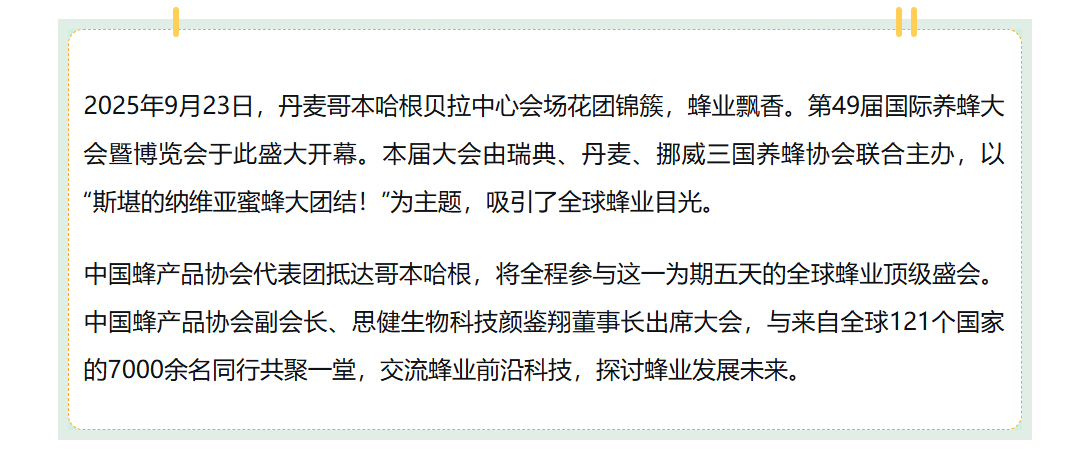 中國蜂協(xié)副會(huì)長、思健蜂業(yè)顏鑒翔董事長出席第49屆國際養(yǎng)蜂大會(huì)